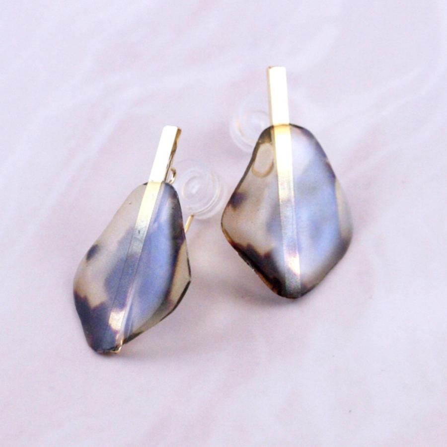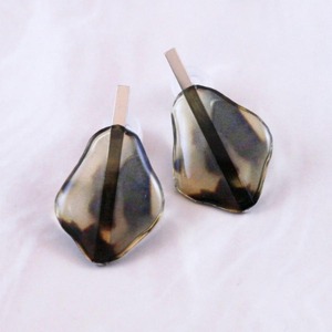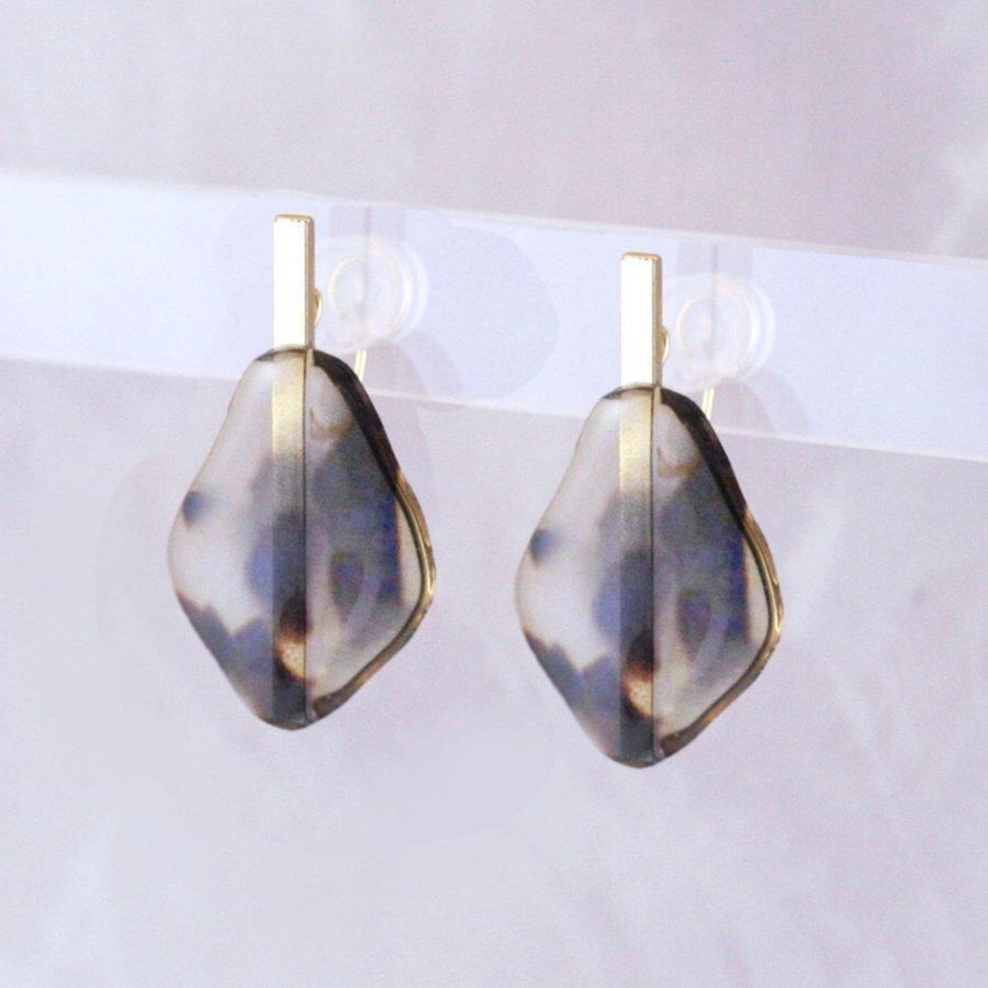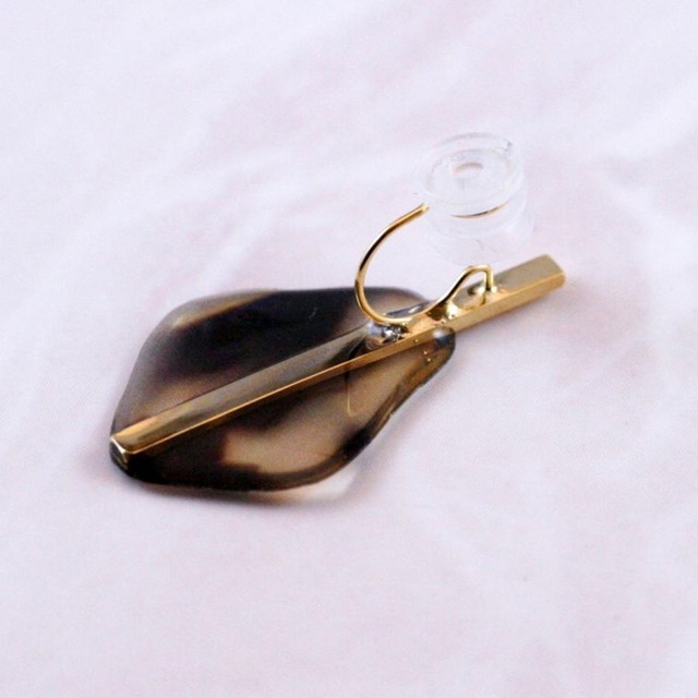 メタルバーをべっ甲柄で挟みこんだ珍しいタイプの直結イヤリング。