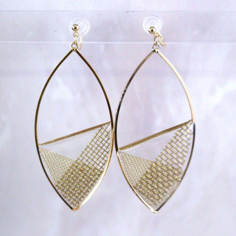 マーキス枠にクリア樹脂でメタルメッシュを配置したイヤリング。