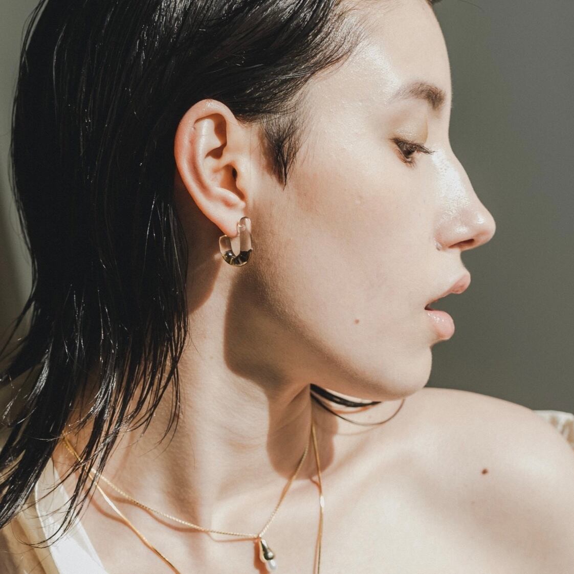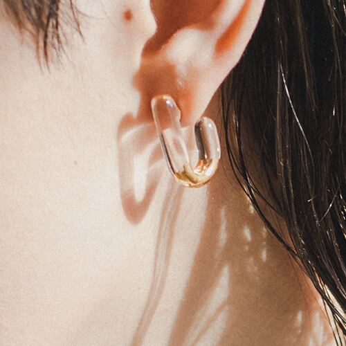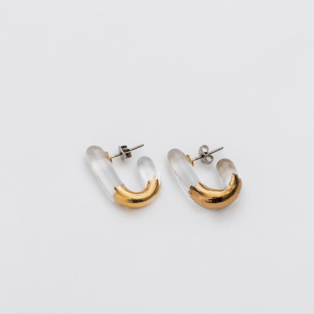 U時ガラス金彩ピアス