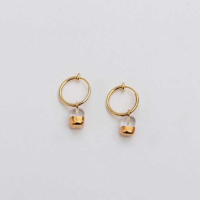 長方体ガラス金彩イヤリング